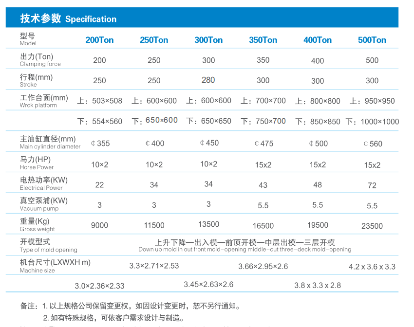 · 前頂開模之適合各種二層或多層模具使用,是一種新型多功能機型;